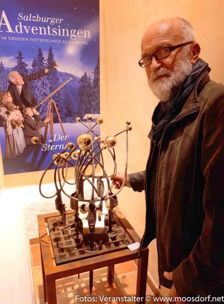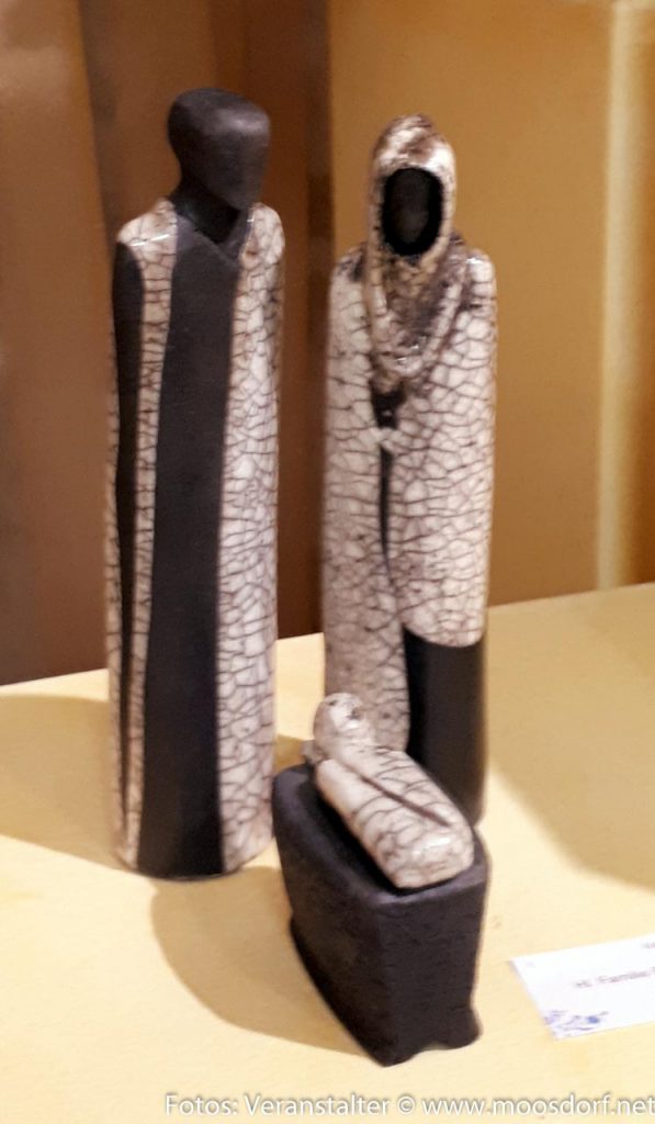 Edith Argauer und Siegfried Wähner aus Moosdorf sind heuer ebenfalls wieder unter denAusstellern. Ediths Tonarbeiten in ihrer klaren, ausdrucksvollen Form sind uns in Moosdorf ja schon seit Längerem vertraut und finden allseits Bewunderung. In vielen interessanten Gesprächen über Siegfrieds Darstellung seiner eindrucksvollen Friedensbotschaft wurde die Symbolhaftigkeit des Werkes besonders hervorgehoben.