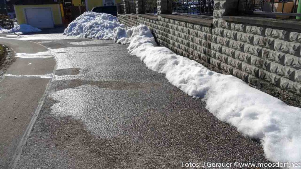 Wer freut sich nicht über diese Strahletage jetzt? Bäume, Sträucher und Dächer werden zuerst aper – also schneefrei. Aber es schmilzt und tropft allerorten, dass es eine Freude ist! Ob es ein sanftes Dahinschmelzen wird, ein helles Glucksen im anschwellenden Bach?
