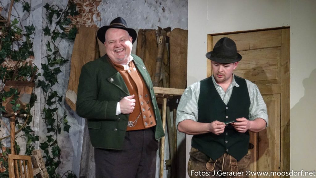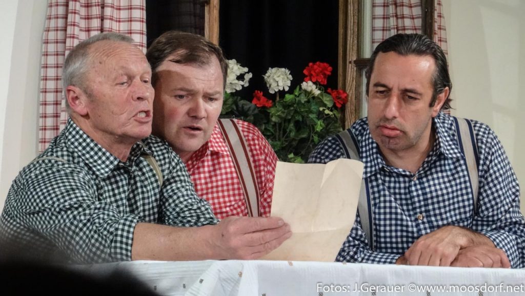 Dieter Bommer, großartig als cholerisch Tobender und Gerlinde Zechner, köstlich keifend als seine Frau, intrigieren, Sigi Schreiner als Bürgermeister trägt schwer an der Last eines amourösen Geheimnisses. Aber es gibt zum Glück Gutmeinende: „Direktor“ Fritz Kaltenegger macht ehrliche Geschäfte und Franz Gruber als freundlicher Postbote stellt Liebesbriefe zu.