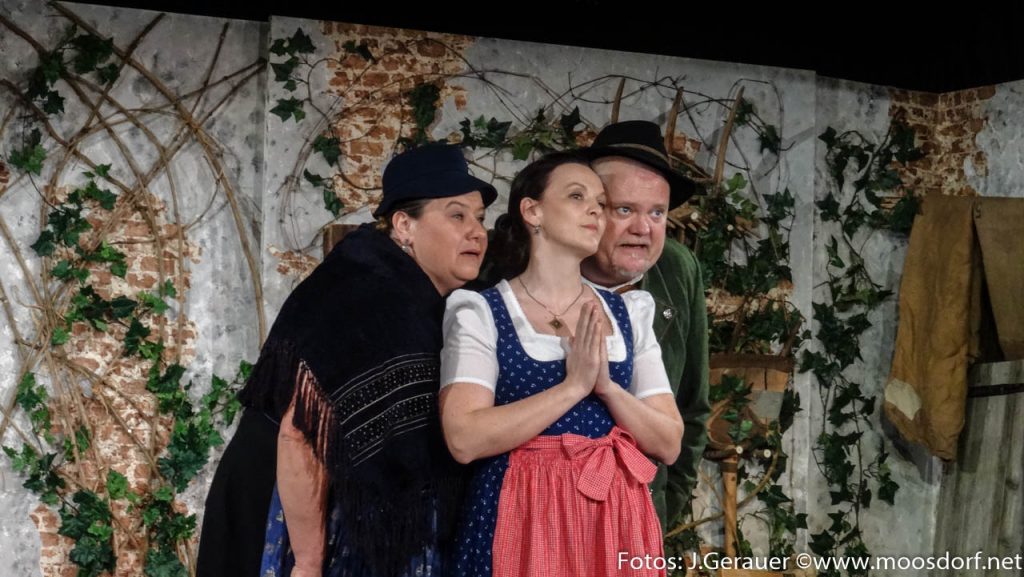 Sandra Reindl, Theater-Plakat-Gestaltende, glänzt in mütterlich ernster Rolle. Ihr Sohn Loisl (Michael Webersberger) arbeitet fleißig und spielt engagiert! Man wünscht es ihm, dass er zusammen mit seiner getreu wartenden Sefferl ( Marlene Dicker) für seine Redlichkeit belohnt wird!