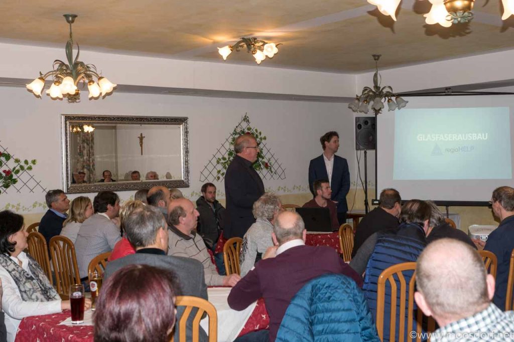 Ob Unternehmen, Landwirtschaft, Privathaushalte, Schüler oder Tourismusanbieter – auch bei uns in Moosdorf kommt praktisch keiner mehr daran vorbei, das schnelles Internet verfügbar ist. Von der Bildung über Arbeitsplätze bis hin zu Einkauf und Unterhaltung ist unser Alltag geprägt von den Möglichkeiten des Netzes. Kurz: wenn Moosdorf „Enkerlfähig“ – und nichts anderes heißt es für die Zukunft gerüstet zu sein – bleiben will, muss hier weiter ausgebaut werden. Denn es geht nicht nur um die grundlegende Versorgung, sondern vor allem auch um eine möglichst rasche und leistungsfähige Anbindung an das Netz. Genau das war das Thema des Informationsabends in Moosdorf. Die wichtigsten Punkte die man nun rund um die Aktivitäten in Moosdorf in Zusammenarbeit mit regioHelp wissen muss, sind hier zusammengefasst.