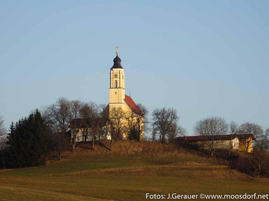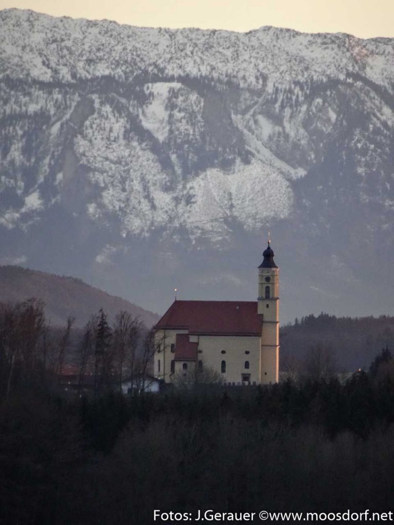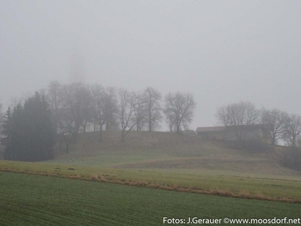Die aus Hackenbuch und Weichsee Richtung Moosdorf Kommenden haben zuerst gesehen, dass sie nichts mehr sehen: Keine Kirche mehr hinter den Bäumen am Moosdorfer Berg!