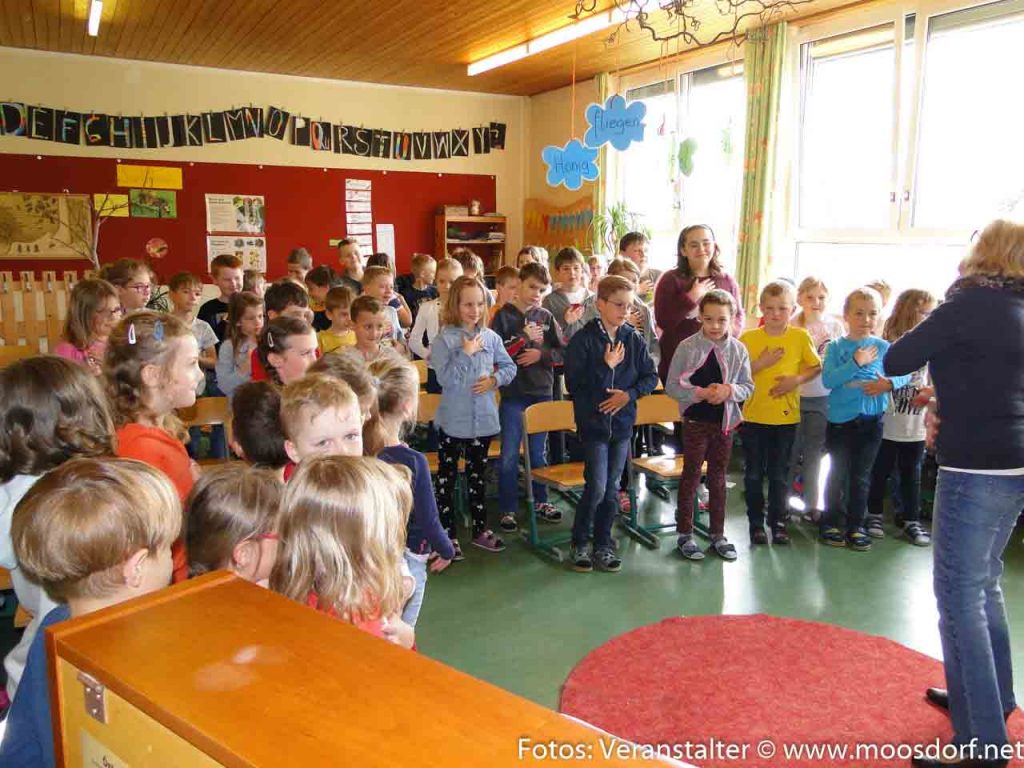 Am Montag, den 13. Mai 2019 haben wir das, 1997 von Edith Friedl geschriebene und getextete Moosdorfer Lied, in die VS-Moosdorf gebracht. Die Lehrkräfte waren sehr aufgeschlossen und haben den Text bereits einige Tage vorher zum Einlernen den Schülerinnen- und Schülern der 3. und 4. Klasse mitgegeben.