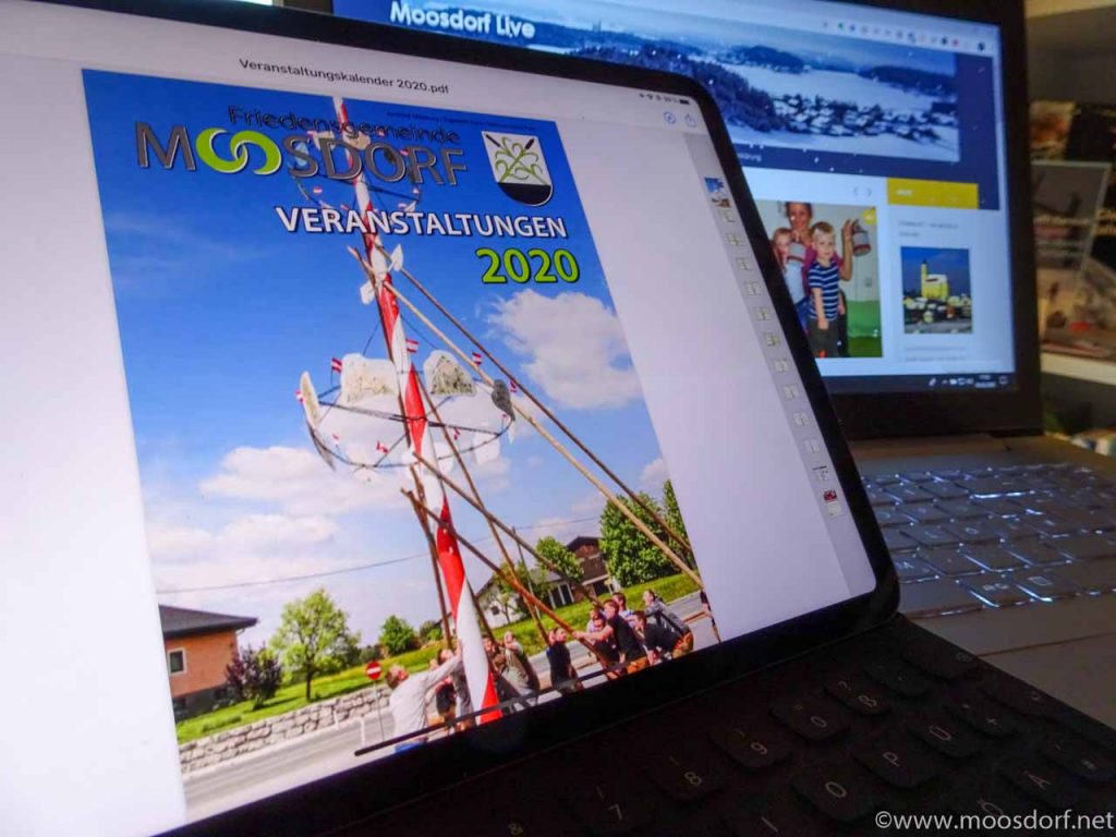 Sucht ihr ihn auch manchmal? Die Papier-Version des Veranstaltungskalenders? Ihr seid sicher ihr habt sie da oder dort hingelegt. Aber: das ist nix. Hier kommt die Abhilfe. Der Veranstaltungskalender von Moosdorf als PDF.