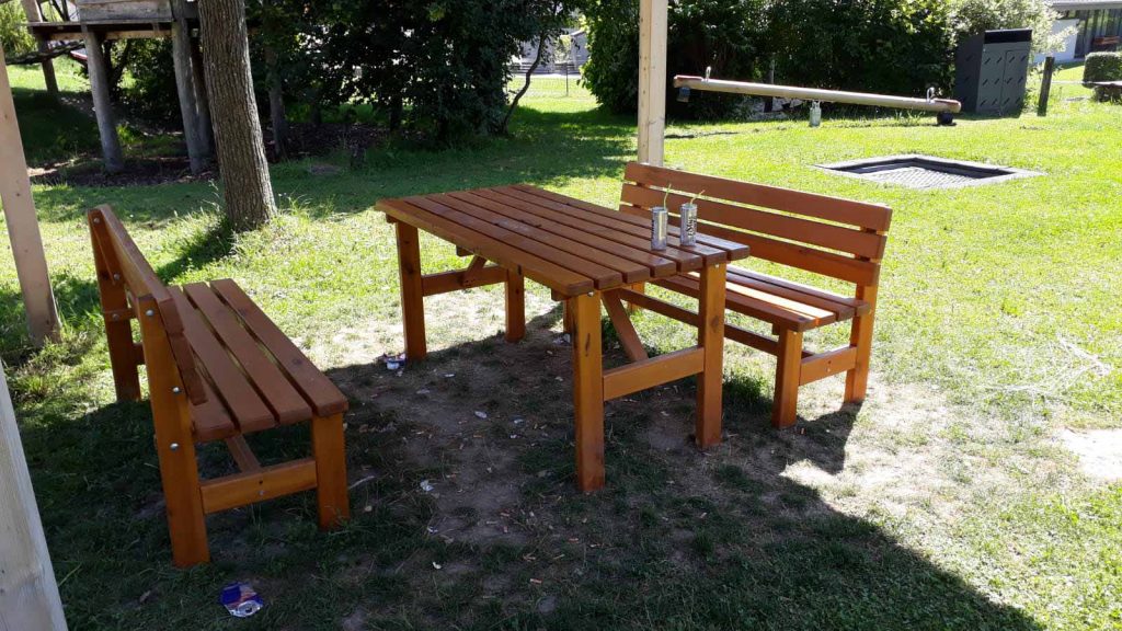 Hie und da – und das verstehen wir – ist es für junge Leute, auch wenn sie schon lange über das „Schaukel-Alter“ hinaus sind und auch der Sandkasten nicht mehr so ganz ihr bevorzugter Aufenthaltsort irgendwie praktisch, dass man sich wo zusammen setzen kann, wo ein Tisch und zwei Bänke sind. Und das kann manchmal unser Spielplatz in Moosdorf sein.