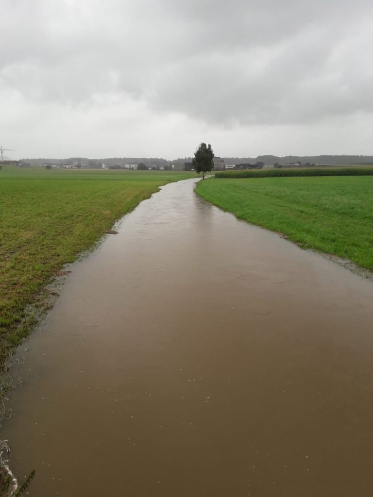 14h01: Die Bildergalerie von Jürgen Haas, wie versprochen… Hier kommt die versprochene kleine Bildergalerie von Jürgen Haas die er uns hat zukommen lassen. Weichsee Bach (der gerade etwas größer ist also sonst), die Straßensperre Hackenbuch / Ibm und das Bild aus der Ettenau. Übrigens: die Landesregierung OÖ geht davon aus, so melden die OÖN, dass wir im Land ohne größere Schäden durch den Regen kommen. Landeshauptmann Stelzer hat das in einer Aussendung mitgeteilt. Um Vorsicht wird aber dennoch ausdrücklich gebeten. Übrigens: der aktuell laufen FF-Einsatz in Eggelsberg ist nach unserem Wissen ein technischer Einsatz wegen Öl-Austritts. Also kein Wasser-Einsatz.