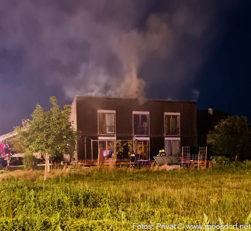 Nach allem was die Feuerwehr erkennen konnte, war der Brand nicht im Haus, sondern in einem angrenzenden Geräteschuppen entstanden. Über die Holzfassade des Hauses gelangte das Feuer dann nach oben. Und ging dann sozusagen mit Glutnestern unter das Dach.