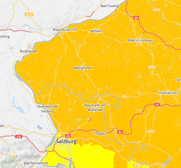 Wie stark es genau bei uns werden wird, also in Moosdorf, ist natürlich nicht wirklich vorherzusagen. Laut dem aktuellen Modell des ZAMG (den Link findet ihr auf der rechten Spalte) sind wir aber am Rande bzw. in dem Gebiet für das eine orange Warnung gilt.