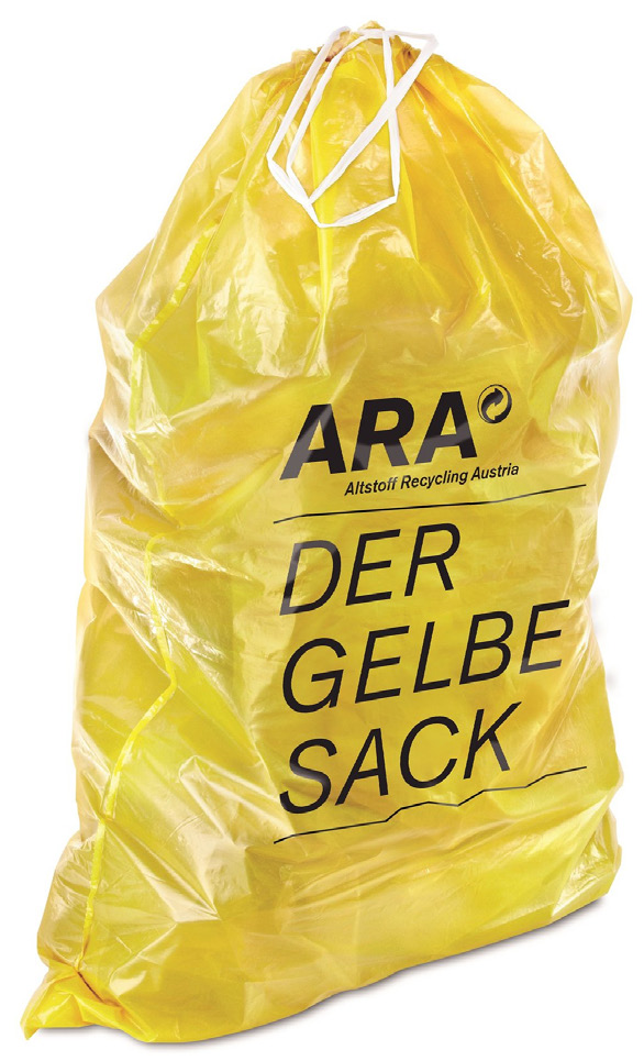 Alle 4 Wochen, direkt ab Haus. Gelbe Säcke mit stark verunreinigten Inhalten werden nicht mitgenommen. Gelbe Säcke könne nicht im ASZ abgegeben werden. Die Säcke werden kostenlos zur Verfügung gestellt (Erstausgabe 13 Stk./Rolle). Die ARA sorgt für die Abholung der Gelben Säcke und für die Sortierung der gesammelten Verpackungen.