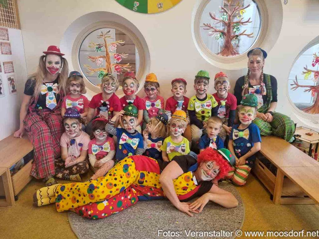 Zum Fasching hat man sich im Kindergarten von Moosdorf was besonderes einfallen lassen: Ein Zirkustag stand an. Mit echtem Clown. Hier ein kleiner Bericht und ein paar Foto-Impressionen. Danke an Alina Heinrich für Fotos und Text!