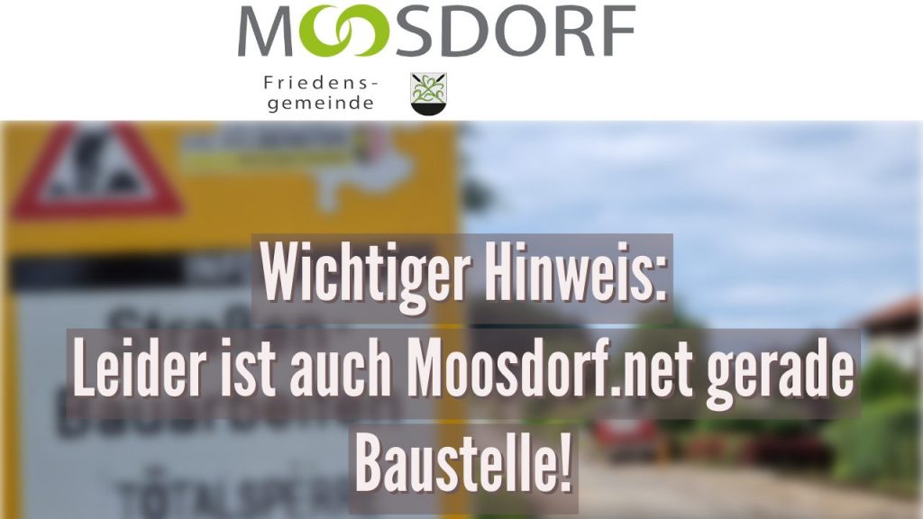 Erfreulicherweise betrifft diese Baustelle nicht den Verkehr in Moosdorf, sondern Moosdorf.net. Noch ist die Seite technisch nicht stabil. Wir bitten um Euer Verständnis, das derzeit der Veranstaltungskalender nicht genutzt werden kann und auch einige andere Funktionen nicht wie gewohnt zur Verfügung stehen.