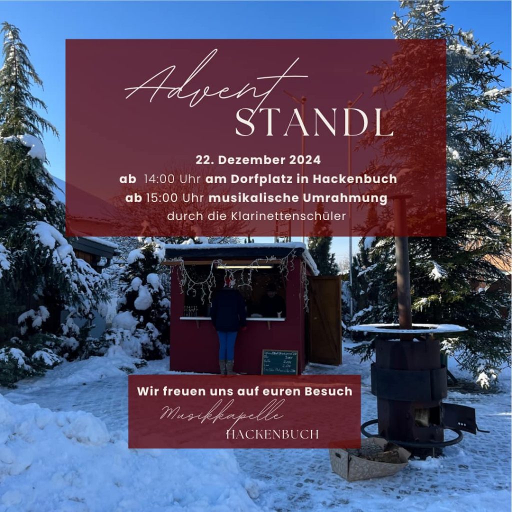 Hier der Einladungstext der Musik aus Hackenbuch für den 22.12. in Hackenbuch am Adventstandl. Wir wünschen allen viel Spaß und gute Unterhaltung.
