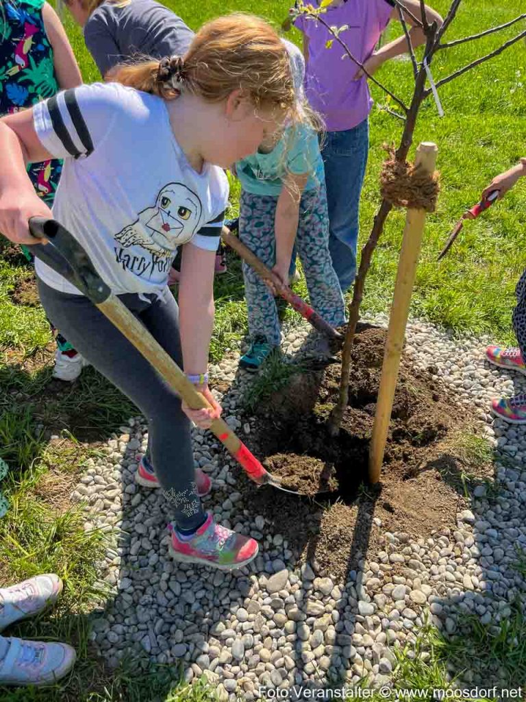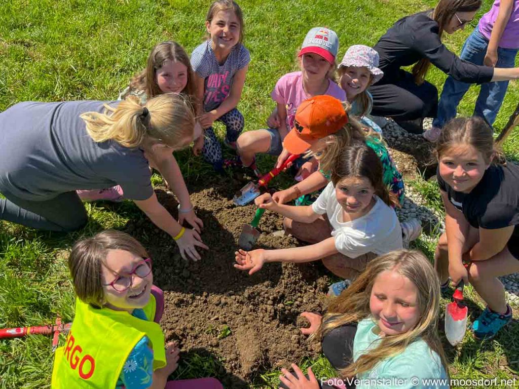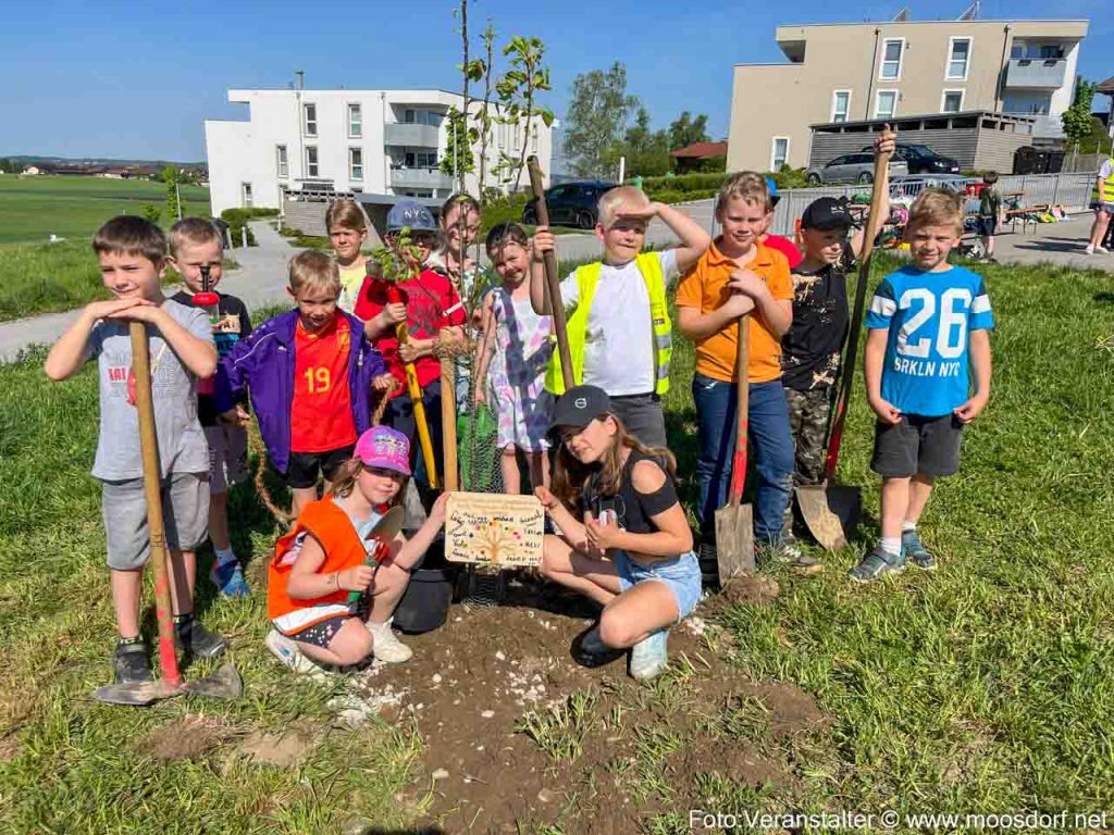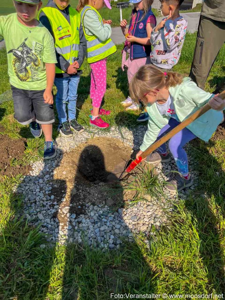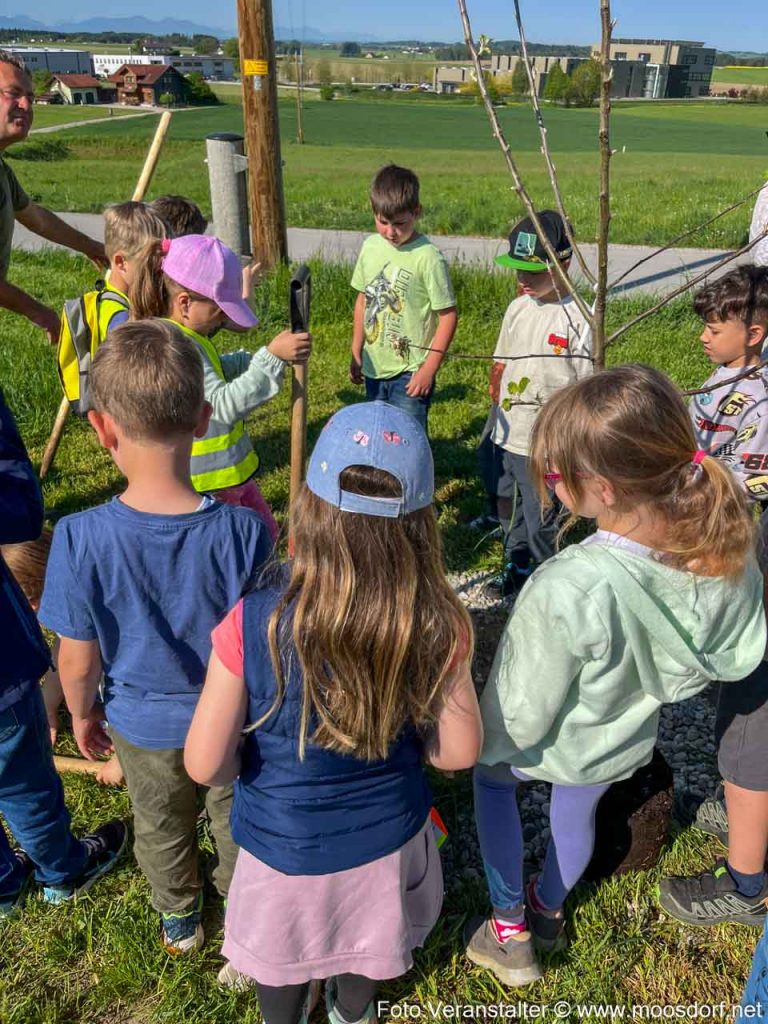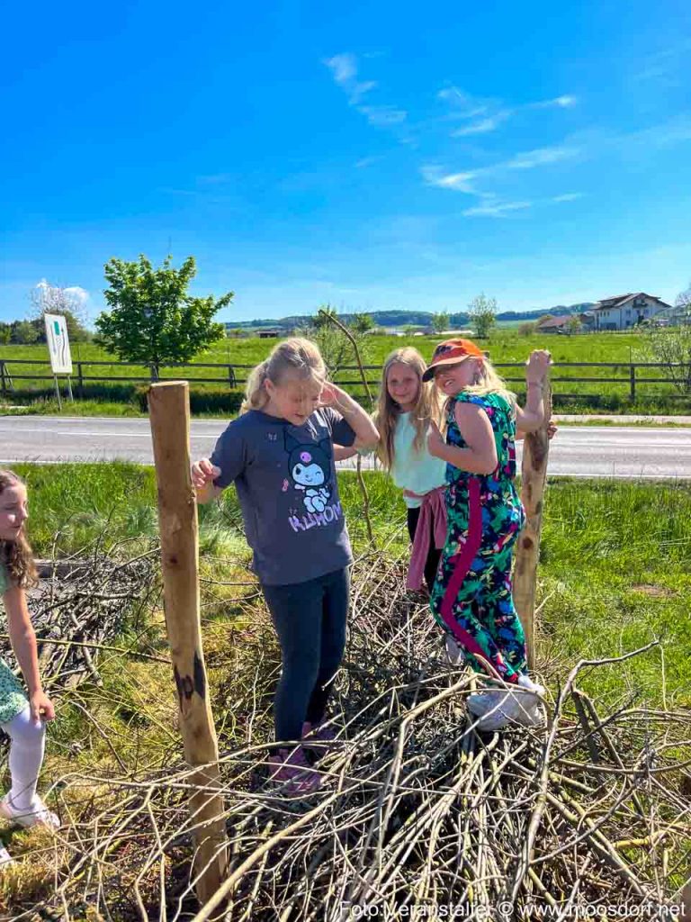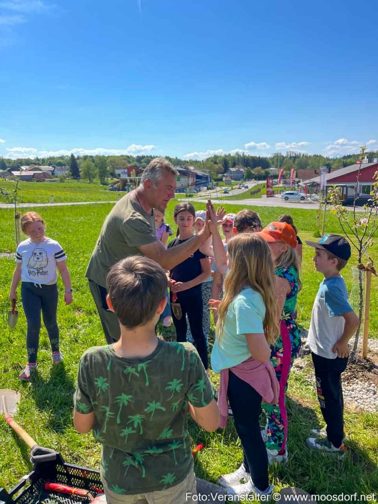 Zum Thema „Kinderarbeit“: Hier handelt es sich nicht um Arbeit im eigentlichen Sinn, sondern um eine bewusstseinsbildende Aktion im Rahmen von Schulunterricht und Workshops. Gemeinsam mit den Lehrkräften und der Direktorin der Volksschule Moosdorf sowie Landschaftsgärtner Franz Hönegger wurde das Projekt so gestaltet, dass die Kinder spielerisch und altersgerecht an die Themen Nachhaltigkeit, Natur- und Artenschutz herangeführt werden.