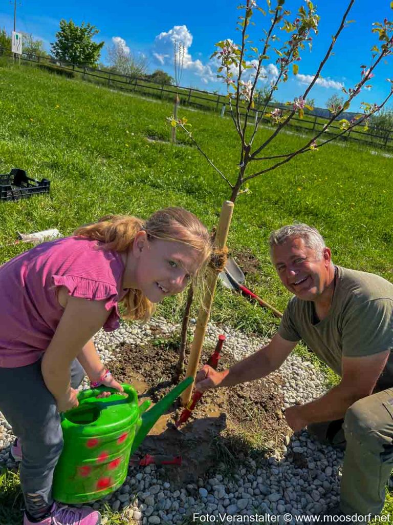 Nach Abschluss des Projektes wird die Streuobstwiese als frei zugänglicher Begegnungs- und Erholungsort allen Moosdorferinnen und Moosdorfern offenstehen – unabhängig von Alter oder Herkunft. Die Pflege und Nutzung ist als gemeinschaftliche Ressource gedacht, die unser Dorfleben bereichert und den Naturschutzgedanken in der Gemeinde sichtbar macht. Es war und ist mir daher auch ein wichtiges Anliegen den Imkerverein miteinzubeziehen und die Möglichkeit zu schaffen, den Schaubienenstock dort aufzustellen um noch mehr Bewusstsein für die Wichtigkeit der Artenvielfalt zu schaffen.